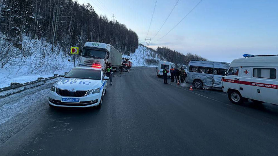 Фото из тг-канала ГУ МВД России по Иркутской области В результате дорожно-транспортного происшествия в Иркутской области пострадали 12 человек. Такие уточненные данные сообщила пресс-служба регионального главка МВД России. ДТП произошло сегодня около 17:00 в районе села Мангутай Слюдянского района на 124 км федеральной трассы «Байкал». По предварительным данным, столкнулись два большегруза и микроавтобус «Хайс» с пассажирами, следовавшими из Иркутска в Улан-Удэ. «По имеющимся сведениям на данный момент, медицинская помощь понадобилась 12 участникам происшествия – водителю и 11 пассажирам автобуса», – говорится в сообщении ведомства в телеграм-канале. На месте аварии работают сотрудники экстренных служб. Движение осуществляется в реверсивном порядке. Ранее сообщалось об 11-ти пострадавших в ДТП. Иркутск, Анастасия Смирнова © 2026,…