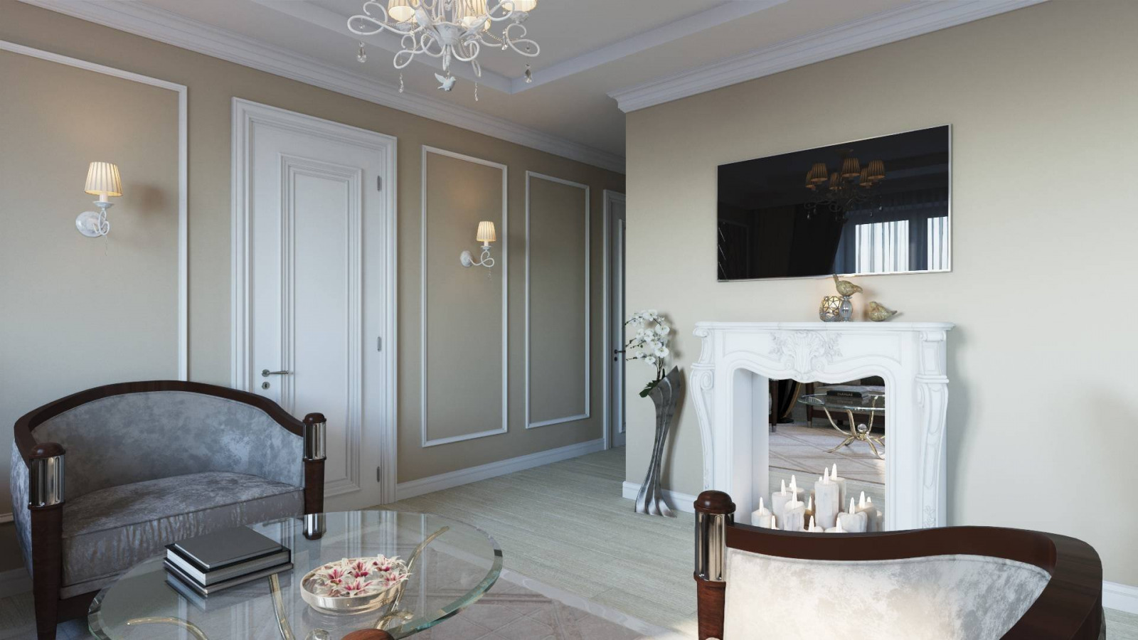 Интересный дизайн с молдингами на стенах